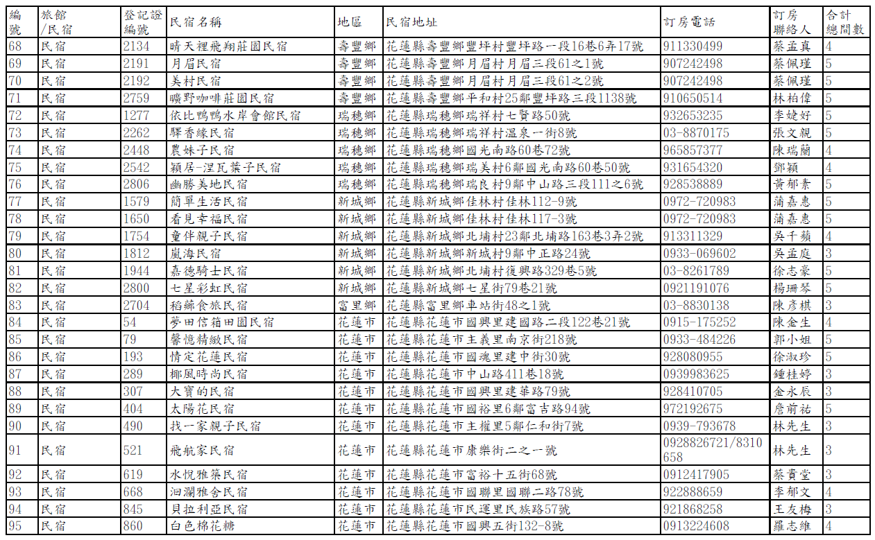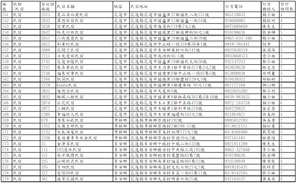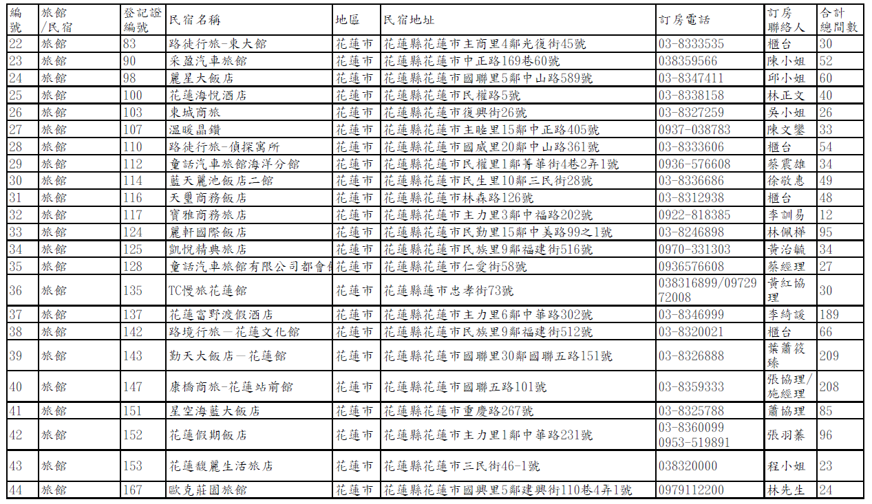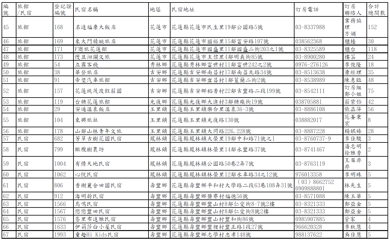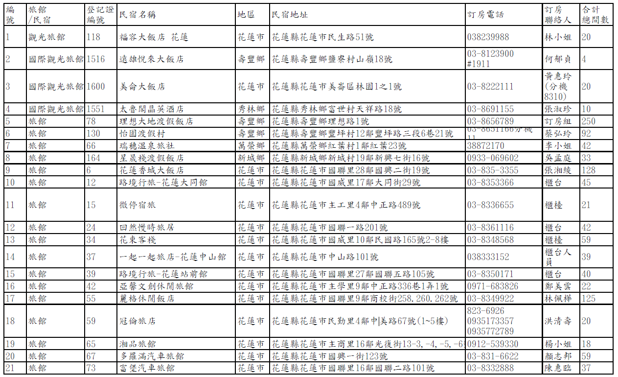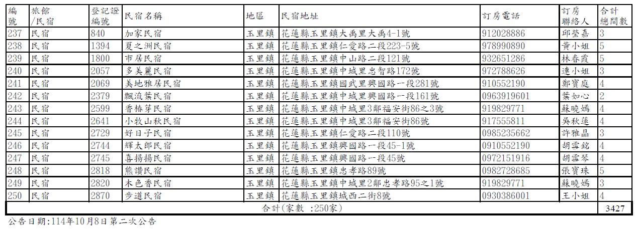 【公告】馬太鞍堰塞湖受災戶短期安置旅宿名冊(114年10月8日第二次公告)