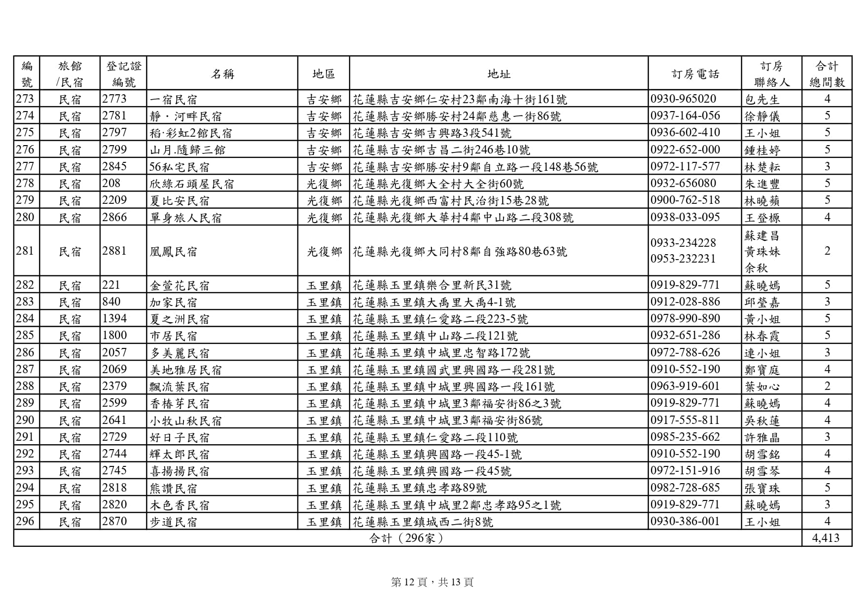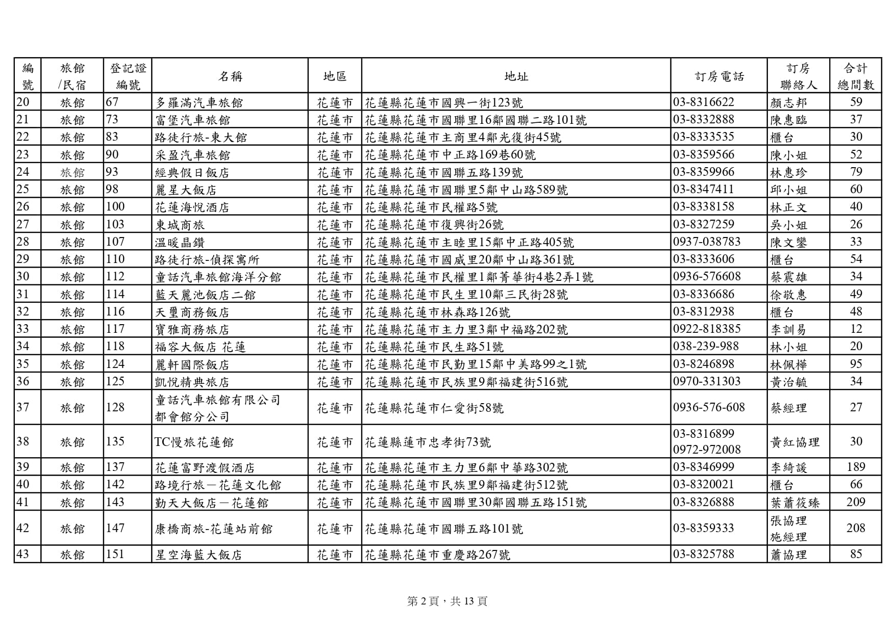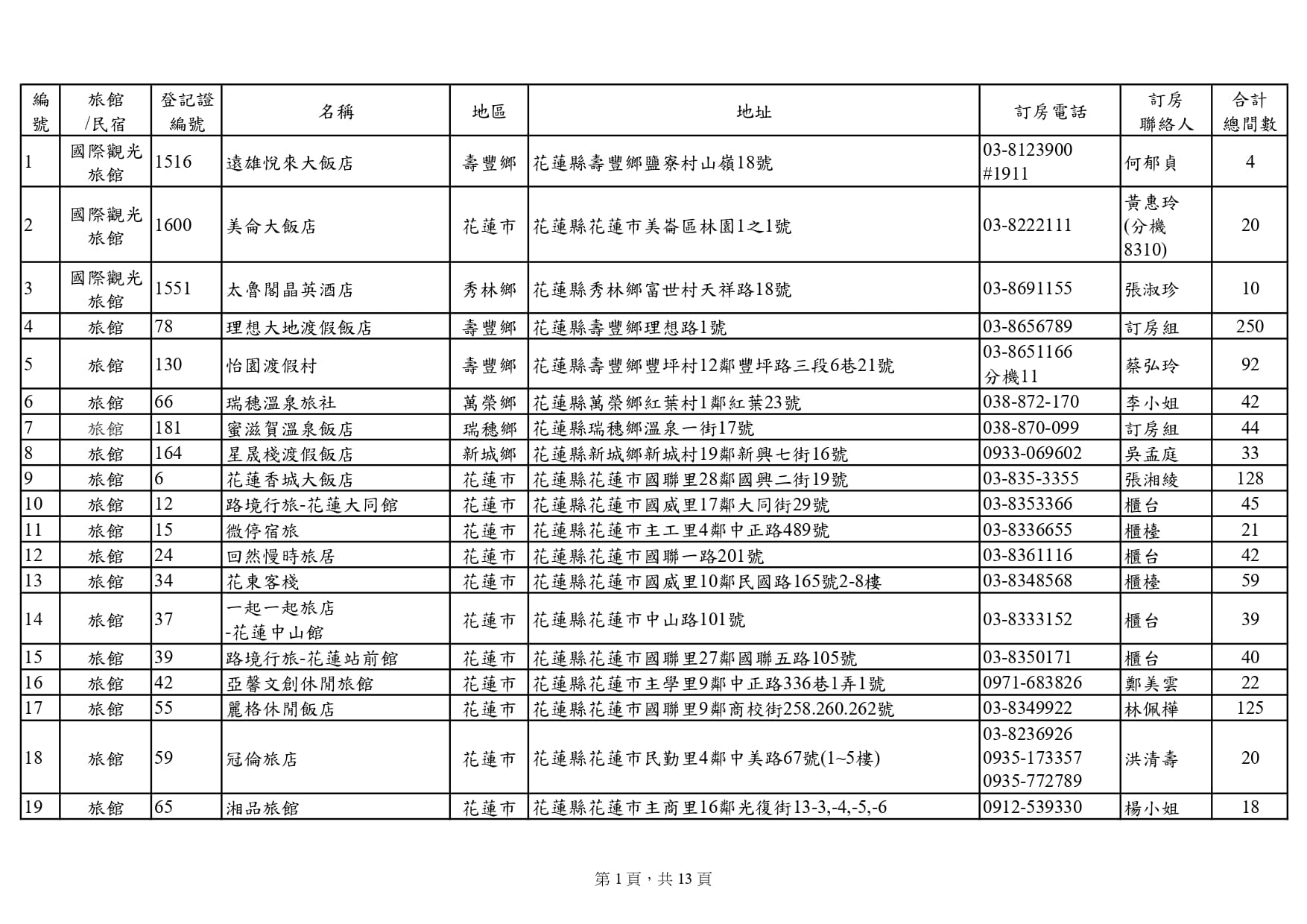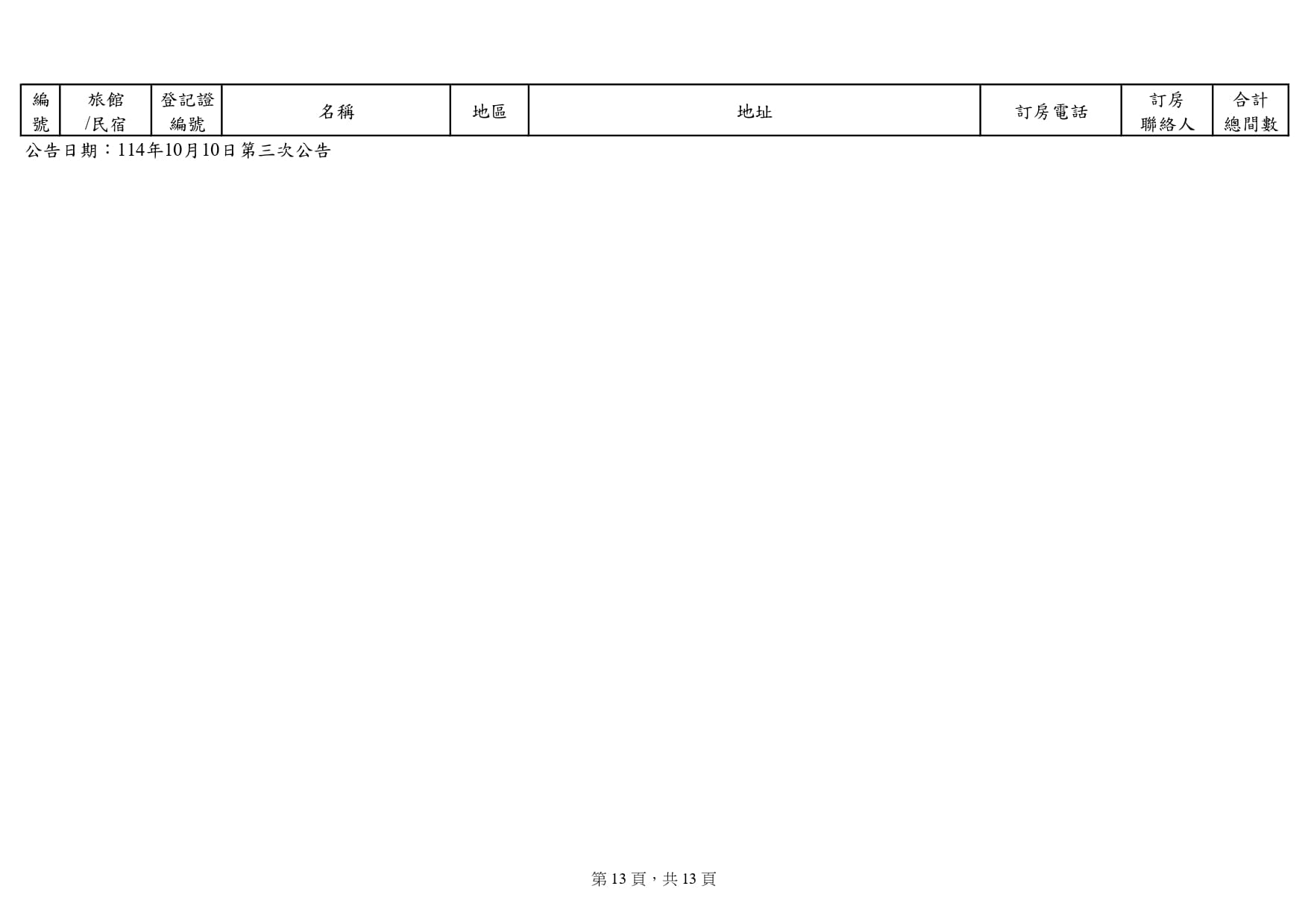【公告】馬太鞍堰塞湖受災戶短期安置旅宿名冊(114年10月10日第三次公告)