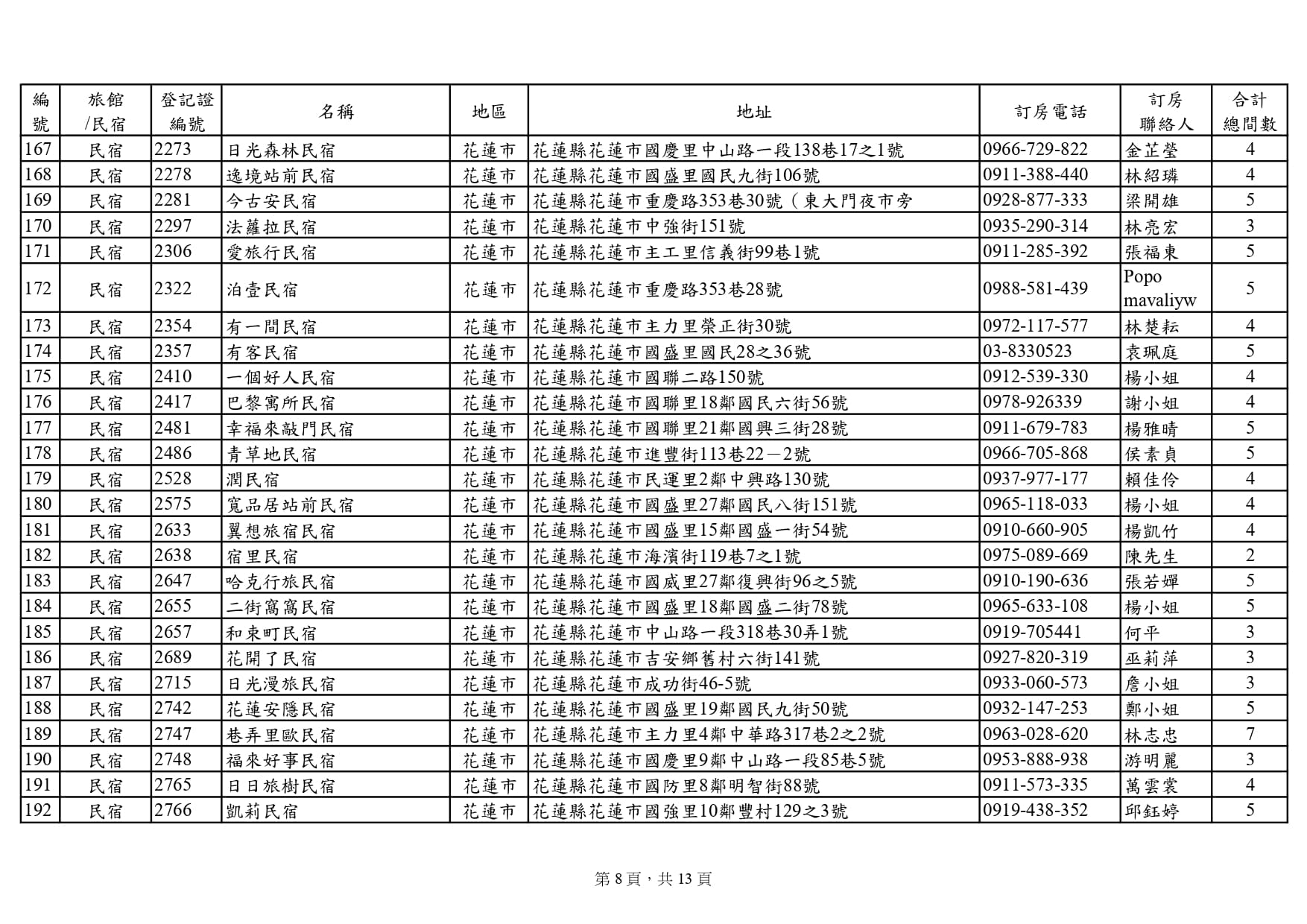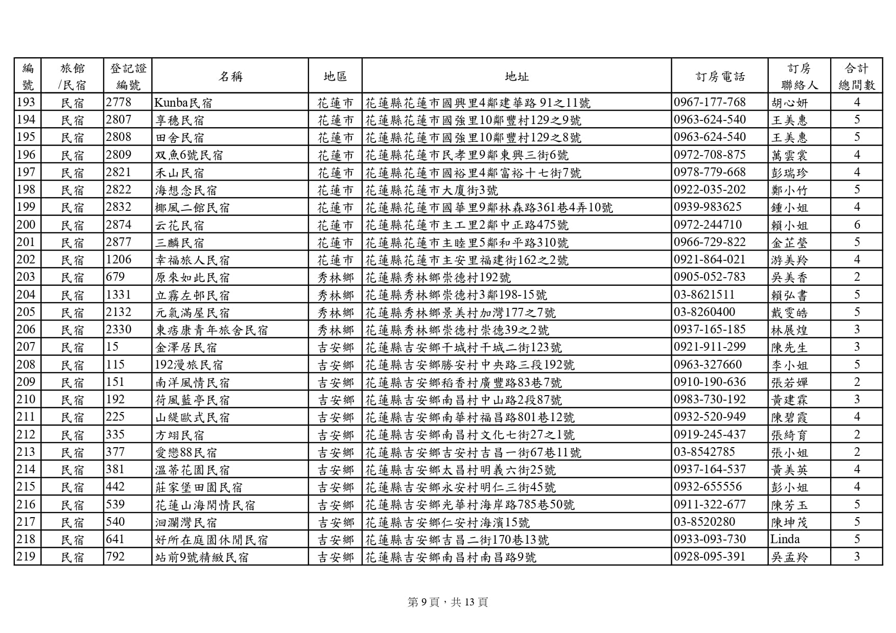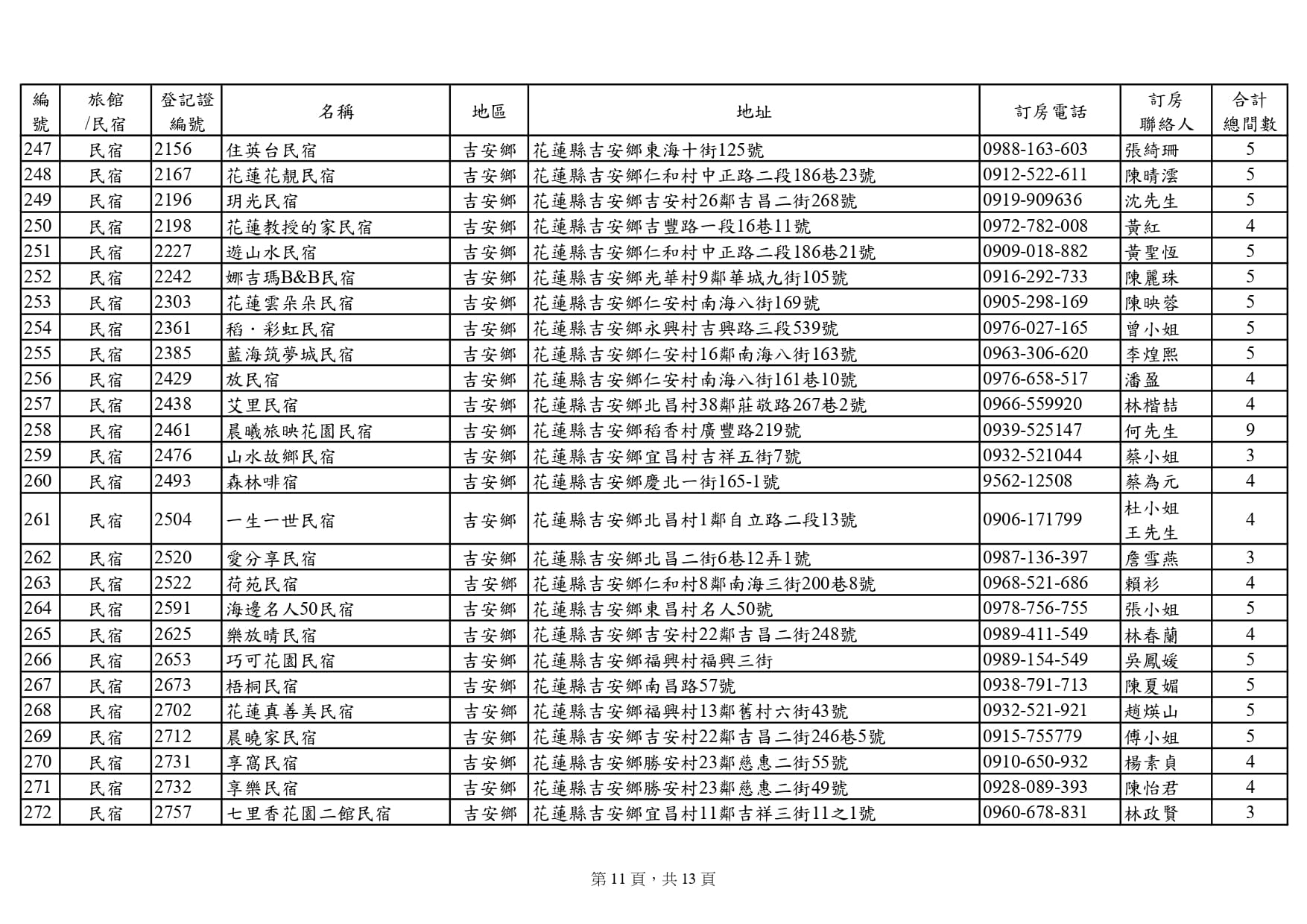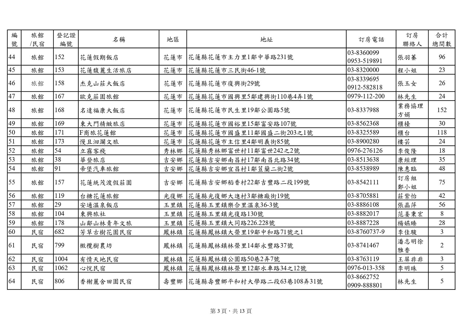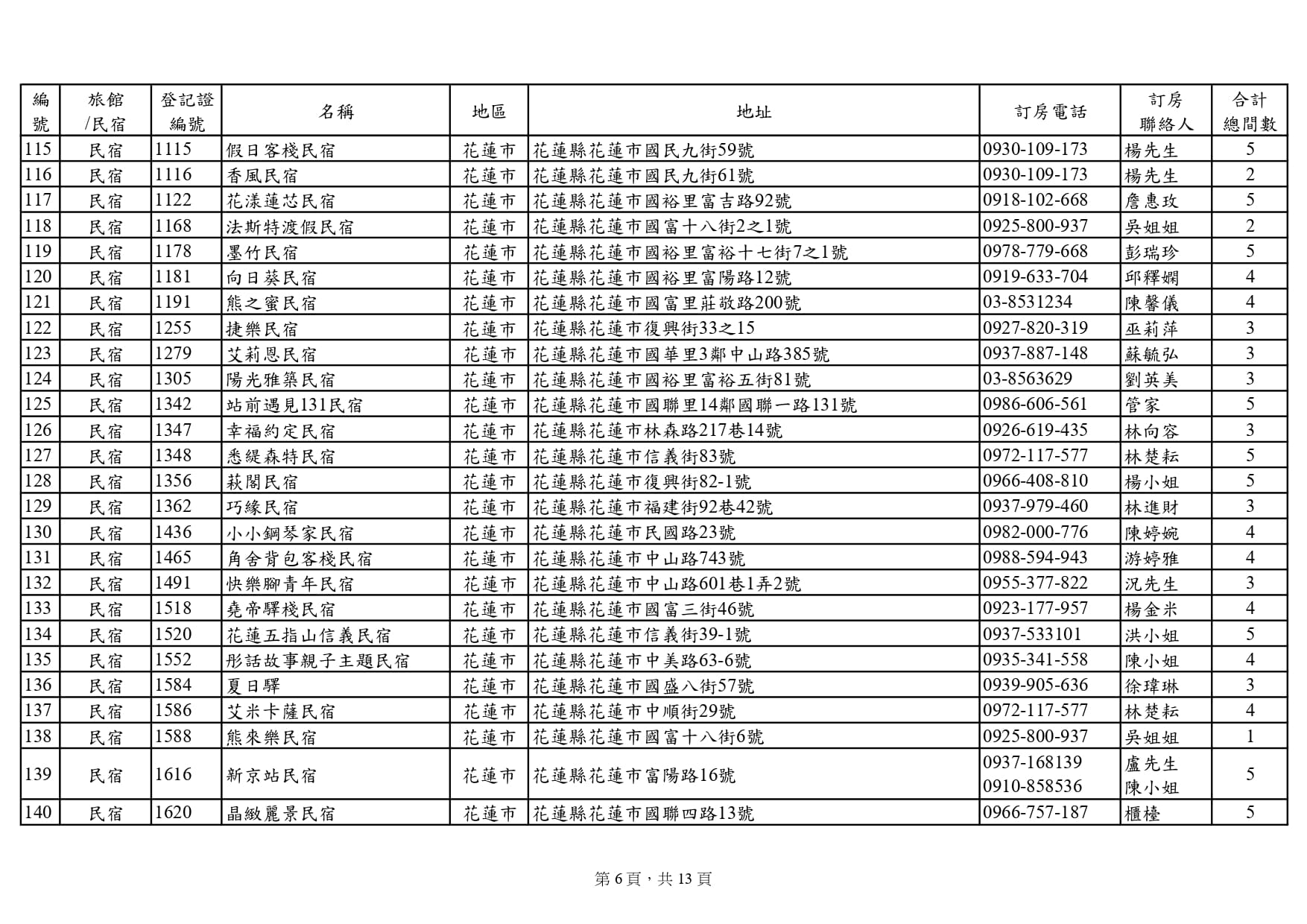 【公告】馬太鞍堰塞湖受災戶短期安置旅宿名冊(114年10月10日第三次公告)