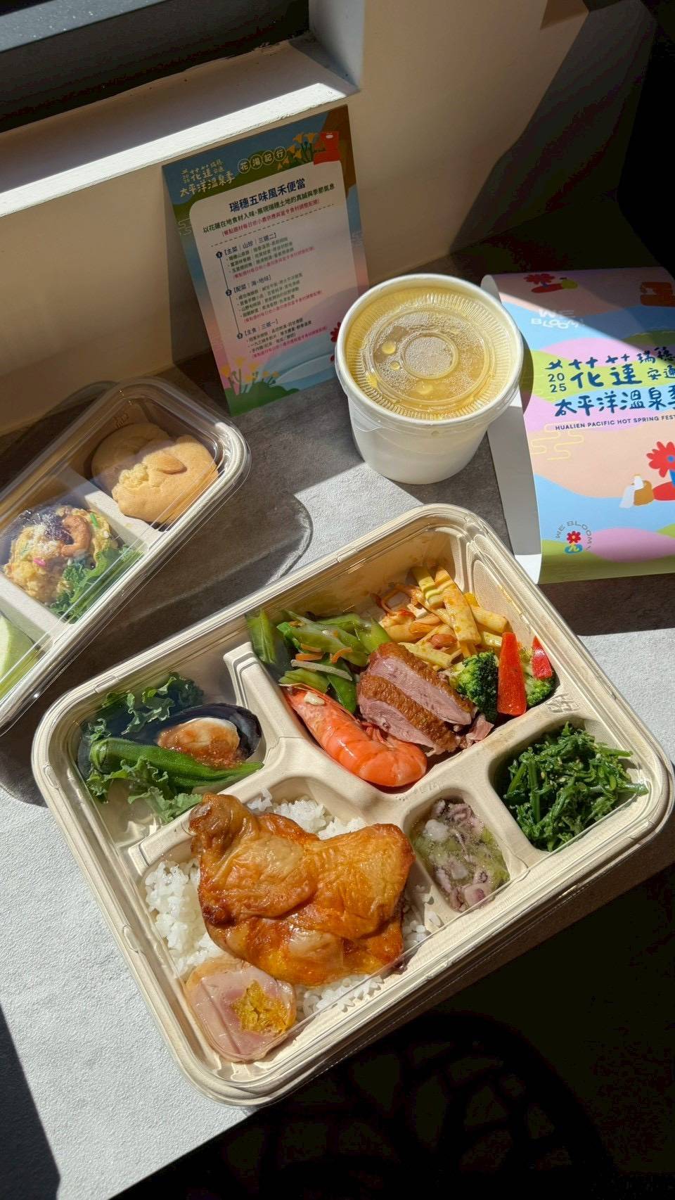 活動期間在瑞穗溫泉區推出的期間限定「溫泉季限定款便當 Warm Spring Wellness Bento」,結合瑞穗在地食材、在地風土與溫泉文化,以「溫泉 × 在地 × 季節 × 健康」為核心概念,從主菜、配菜到甜點與湯飲,皆嚴選花蓮優質農漁牧食材,並融入瑞穗溫泉特色。主菜提供「稻香山泉豚」、「富源林香雞」、「玉里櫻香鴨」與「草原奶香奇美牛」四款選擇,搭配成功海韻蝦、山野旬時蔬與田原鮮蛋等配菜,呈現瑞穗山海風土的豐饒滋味。主食則提供冠軍雪香米、多穀養生飯,或瑞穗風味麵(蜜香紅茶、南瓜、鮮奶)等豐富選擇,滿足旅客多元口味。甜點部分包含秋韻南瓜沙拉、溫泉優格、雪融奶酪與雲朵泡芙等輕甜選品,再佐以時令鮮果,展現東台灣清新自然的氣質;湯品與飲品則提供溫泉風味的「鳳鹽泉韻湯」與兩款特調沁香飲。從食材挑選、風味設計到包裝美學,每一個細節都藏著土地的氣味與溫泉的溫度,讓旅人能以味蕾品嚐瑞穗的溫泉韻味,走讀花蓮的風土物語。