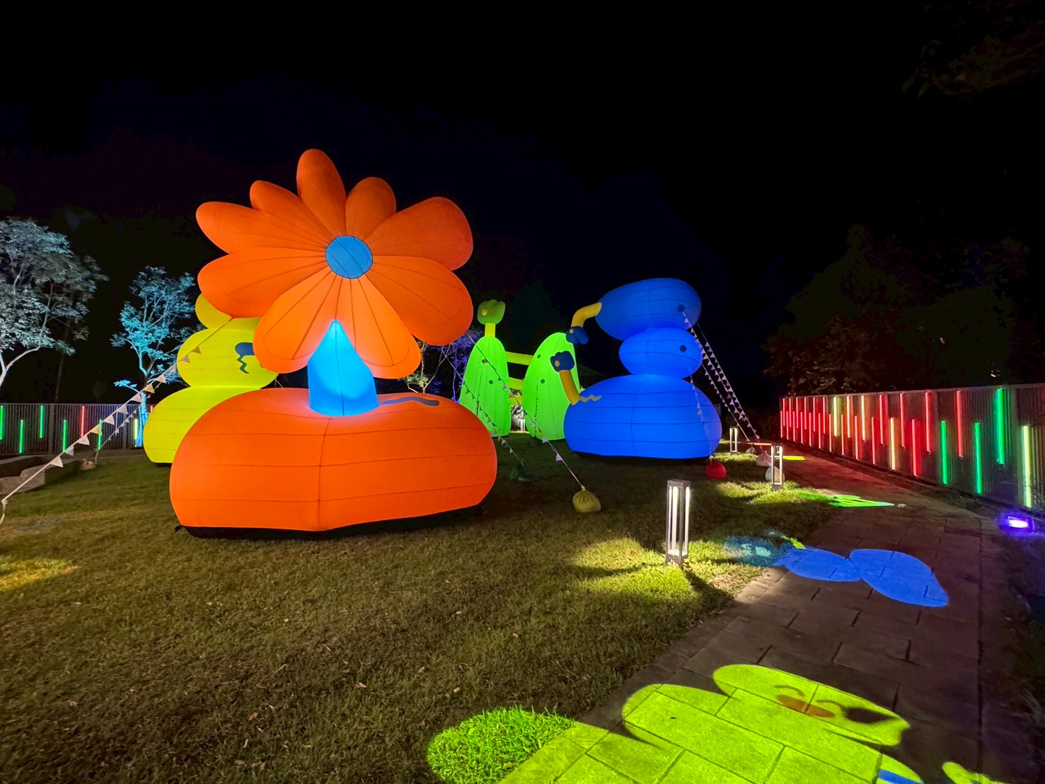 瑞穗溫泉公園今年以「繁花盛開」IP 裝置藝術打造全新景觀,白天繽紛迷人、夜晚溫柔浪漫,成為熱門拍照打卡點。昨(23)日來自瑞穗的家庭前來遊玩,由兒子及媳婦陪著89歲媽媽提早慶生。婆婆一看到「繁花盛開」的藝術裝置,立刻讚嘆「真漂亮!」還分享自己「生了六個兒子、一個女兒」,笑稱瑞穗溫泉果然名不虛傳,是「生男之湯」。曾當過模特兒的媳婦則說,希望藉這趟小旅行讓婆婆留下美好的生日回憶。而婆婆更與公園內主題藝術裝置留下多張可愛又亮眼的照片,成為現場最受歡迎的主角。
