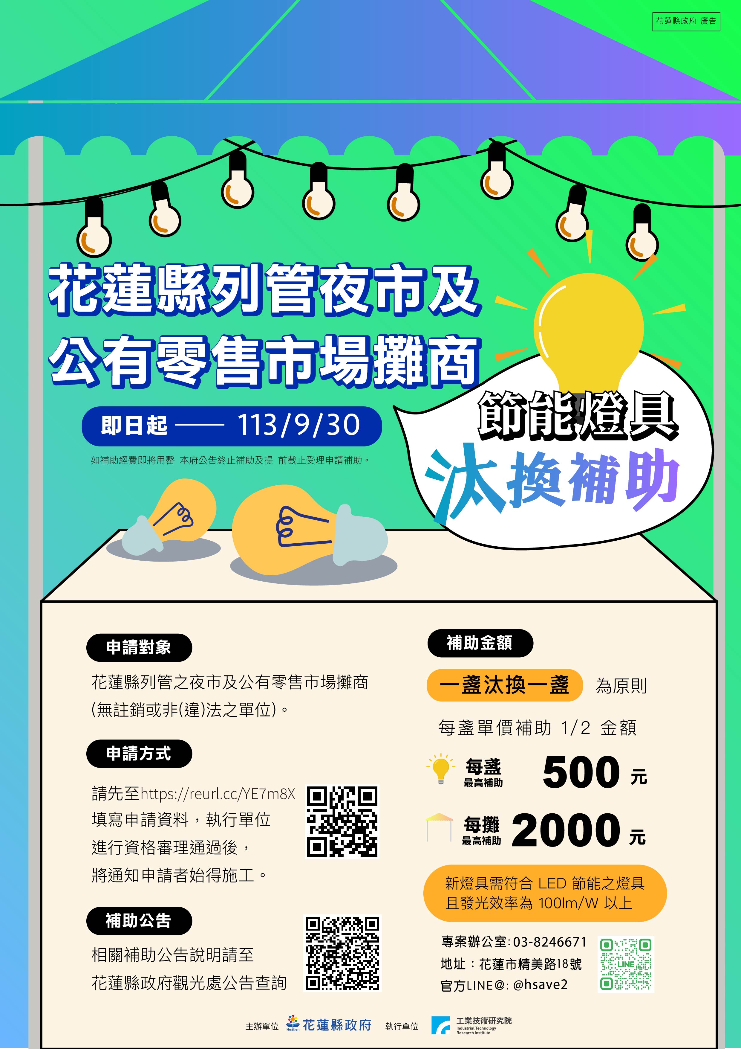 花蓮縣列管夜市及公有零售市場攤商 【節能燈具汰換補助】開跑囉!