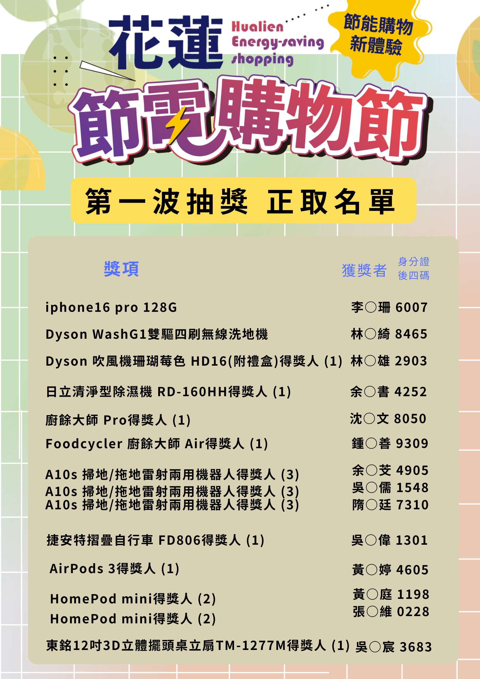 👏恭喜幸運的得獎者!節能永續又能抽好禮