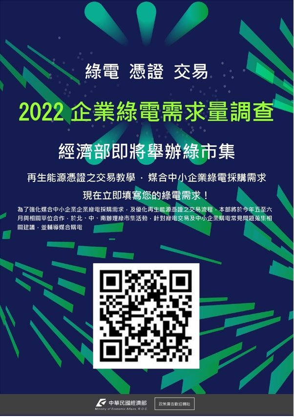 為了強化媒合中小企業企業綠電採購需求,及優化再生能源憑證之交易流程,經濟部將於今年五至六月與相關單位合作,於北、中、南辦理綠市集活動。